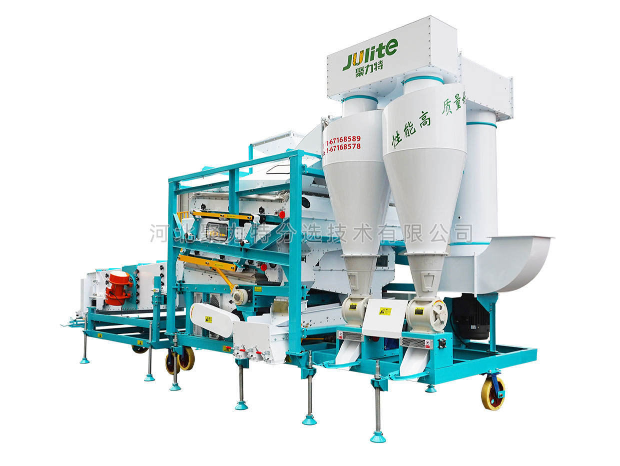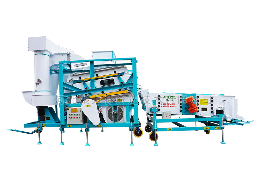 高粱篩選組合設(shè)備由雙體脫殼機、低速無破碎提升機、復(fù)式比重清選機、雙篩箱振動篩組成。